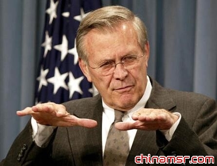 自己赤裸裸的杀气。在阿富汗战争之前的一次新闻发布会上,有记者曾问他为何战机选择炸某些地方,他简洁地答了一句:“杀死他们!”在另一次新闻发布会上,他更是用了9个“杀”字。 当时,伊拉克战争又是箭在弦上,作为国防部长的拉姆斯菲尔德更是凶得很。他今天说,萨达姆不除不行;明天又说,只要萨达姆流亡,也不失为解决伊问题的一个好办法。据报道,他对制定入侵伊拉克的计划也是大权独揽。中央司令部司令、四星将军汤米·弗兰克斯是对伊作战计划实际起草人,但五角大楼有官员说,“这种说法不对头,弗兰克斯也许是草拟者,但拉姆斯菲尔德才是真正的设计师”。