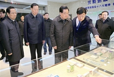2012年12月27日,胡锦涛在集团冻干粉针车间听取扬子江药业集团董事长徐镜人汇报企业发展情况