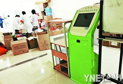 昨天中午,记者首先来到最初安装触摸终端的药店之一王府井医药商店,在店内,记者并没有发现查询机器的身影。经询问,药店工作人员告诉记者,店内的触摸屏查询机器已经坏了半年多,由于老店迁址,机器也被搬到了位于王府井书店对面的新医药商店内。在新医药商店,记者在药店的角落里找到了这两台处于黑屏状态的机器,没有插电,无法使用,与不少尚未拆封的杂物堆放在一起。在王府井药店二楼,记者同样发现了一台处于黑屏状态的查询机器,药店工作人员称,由于零件出现故障已报修,机器已有一段时间不能使用。