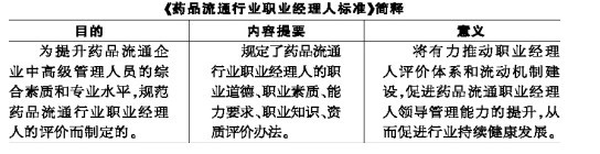 在《药品流通行业职业经理人标准》(以下简称《职业经理人标准》)中,对职业经理人的职业道德、职业素质、能力要求、职业知识、资质评价办法等方面进行了设定。该标准的出台将进一步促进药品流通行业职业经理人领导管理能力的提升,从而促进行业持续健康发展。