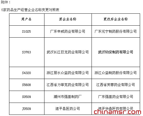 你们提交的关于变更企业名称的申请收悉。根据河南省卫生厅等七部门《关于印发<河南省医疗机构药品集中招标采购监督管理暂行办法(试行)>的通知》(豫卫发〔2007〕24号)第九条第二款规定,经审核,广东申威药业有限公司等6家药品生产经营企业名称变更申请有效,采购期间原企业应履行的一切责任和义务,均由变更后的企业承担。