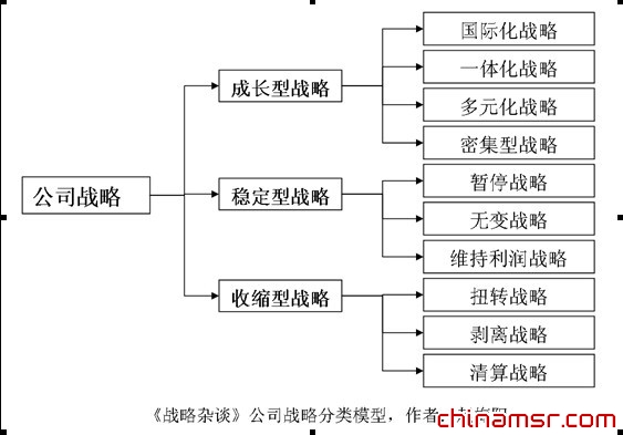 公司战略,从企业发展的角度分为三大类,即成长型战略、稳定型战略和收缩型战略。