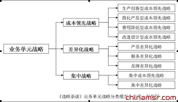 业务单元战略,从波特的竞争战略可以分为成本领先战略、差异化战略和集中战略。
