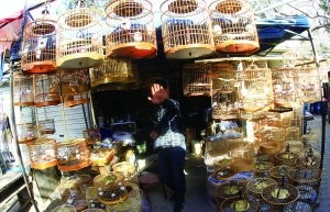 昨日,十里河市场,经营鸟笼的摊位生意冷冷清清。