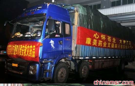 据悉,缺少医疗器材、药品是目前抗震救灾工作中最突出的问题。康美药业的药品物资包括康美诺莎、康美利乐、康美诺氟沙星胶囊等抗菌药品以及菊皇茶饮料,价值百万。董事长、总经理马兴田表示,时间就是生命,我们将以最快速度、千方百计将药品送到灾区人民手中,公司还将根据灾区情况,准备更多的药品支援灾区。