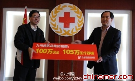 通过湖北省红十字会,九州通向雅安地震灾区捐赠100万元现金、价值105万元医疗器械。