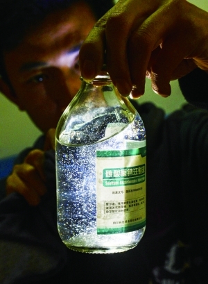 他向记者展示了在市场上购买的该药品。记者看到,该药品由四川一家上市企业生产,生产日期为2011年7月27日,有效期至2013年6月。轻轻晃动一下这瓶仍处于有效期内的药品,瓶内的玻璃碎屑如碳酸饮料的气泡一样飞旋翻滚。