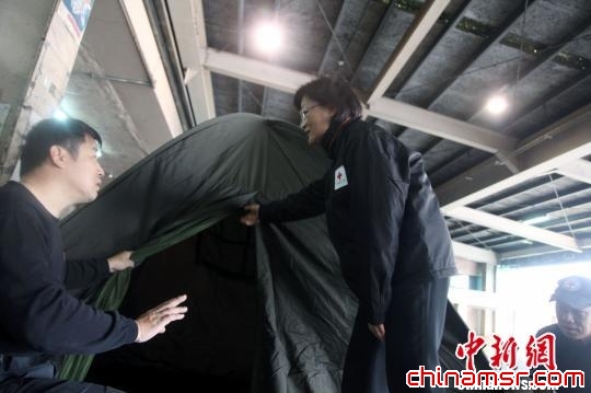 图为拟送往雅安重灾区的6人帐篷,有弹力。 董会峰 摄