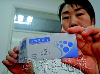 李女士说,“他巴唑”很便宜,2块5一瓶,一瓶100片,一天6片,能吃半个多月。与“他巴唑”有同样疗效的还有一种叫“赛治”的德国进口盒装药,不过一盒要30多元。