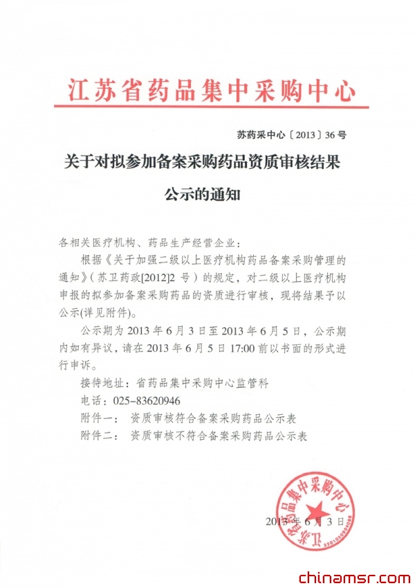 2013年江苏省关于对拟参加备案采购药品资质审核结果公示的通知 (百度虫医药商务网)