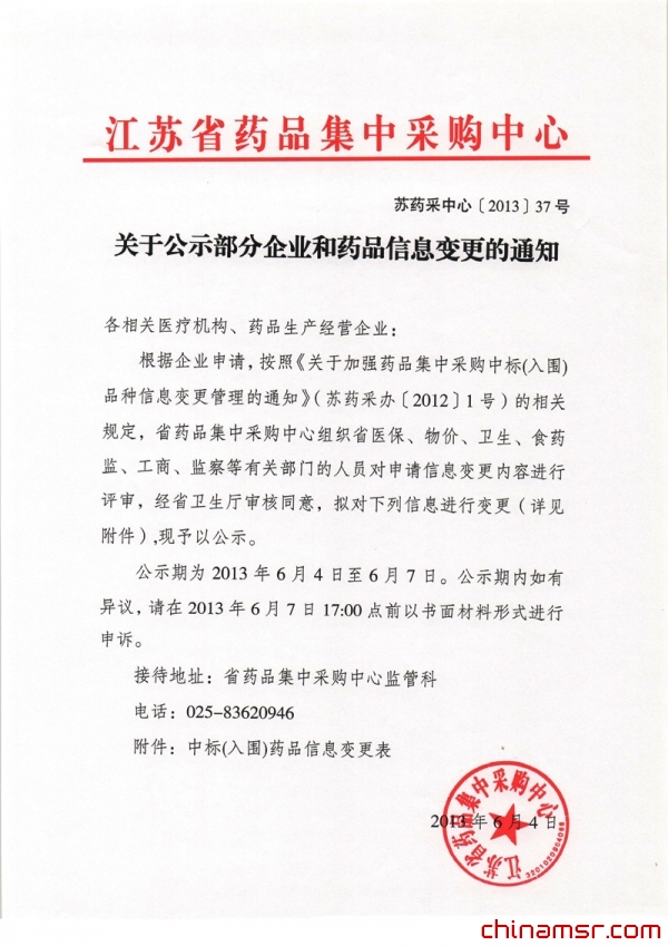 2013年江苏省关于公示部分企业和药品信息变更的通知