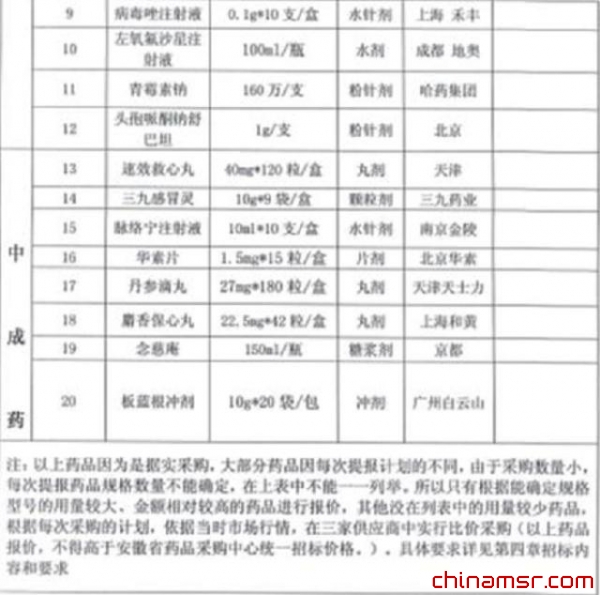 安徽中烟工业有限责任公司阜阳卷烟厂职工医院药品采购供应商入围招标公告(招标编号:GN2013-3-567) (百度虫医药商务网)