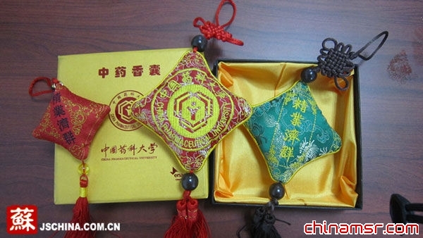 端午将近,中国药科大学的校园里飘起了阵阵中药香气。这可不是药大的学生们在做中药材的实验,而是药大学子自制的中药香囊“上市”了。