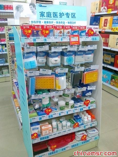 药店如果打破原来陈列:建立家庭护理中心,按照创伤护理、健康防护、随身药盒(含车载药箱)、物理治疗完善产品、集中陈列,明确标示,就可以吸引消费者眼球,让其有“原来家庭护理有这么多产品”,加上推广刺激,深圳康寿药铺的家庭护理类产品销售可以突飞猛进增长。