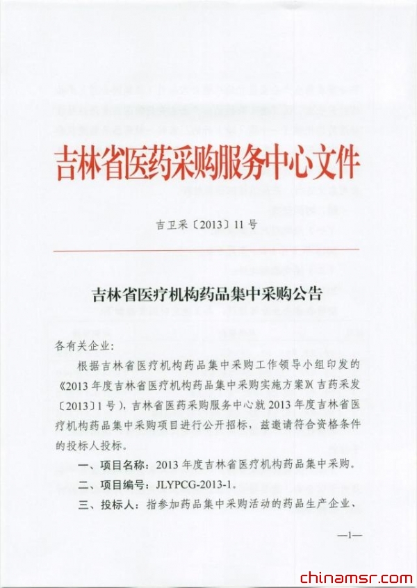 关于印发《2013年度吉林省医疗机构药品集中采购实施方案》的通知 (百度虫医药商务网)