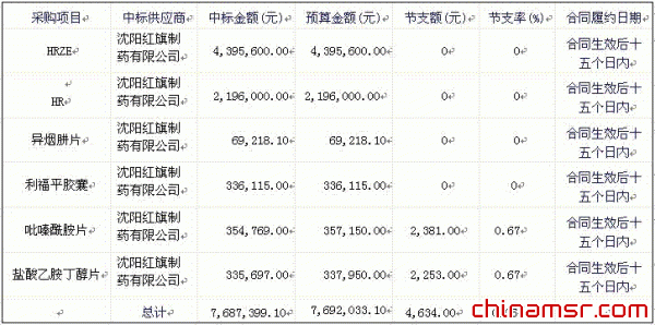2013年黑龙江省关于中央补助结核病防治项目抗结核药品采购及服务成交公告 (百度虫医药商务网)