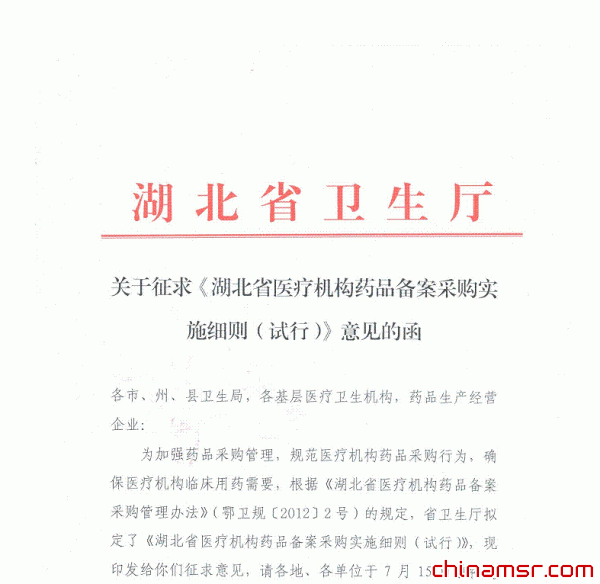 2013年湖北省关于征求《湖北省医疗机构药品备案采购实施细则(试行)》意见的函 (百度虫医药商务网)