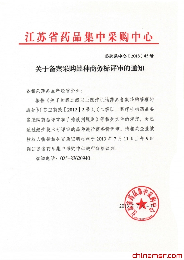 2013年江苏省关于备案采购品种商务标评审的通知 (百度虫医药商务网)