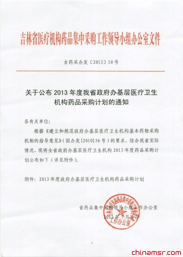 吉林省关于公布2013年度我省基层医疗卫生机构药品采购计划的通知 (百度虫医药商务网)