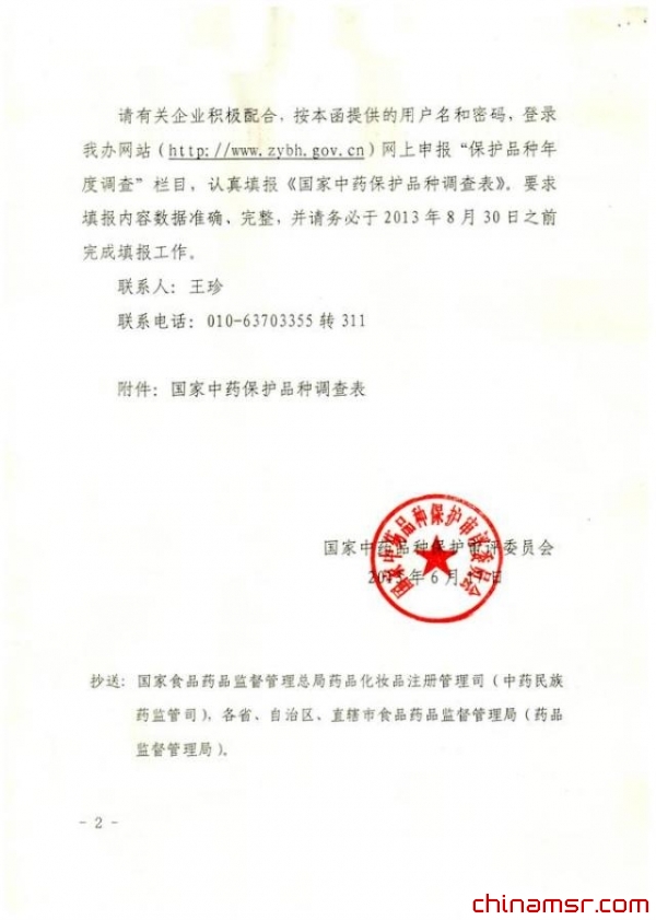 2013年国家中药品种保护审评委员会关于开展国家中药保护品种有关情况调查的函 (百度虫医药商务网)