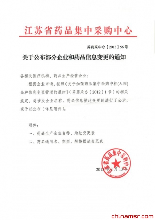 2013年江苏省关于公布部分企业和药品信息变更的通知(2013.8.13) (百度虫医药商务网)