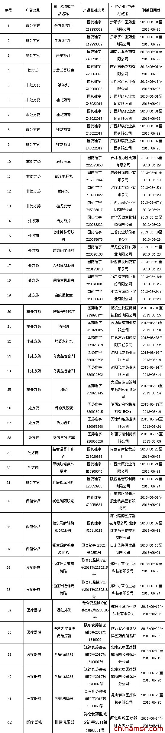 四川省2013年第8期违法药品、医疗器械、保健食品广告公告汇总