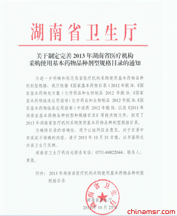 湖南省关于制定完善2013年湖南省医疗机构采购使用基本药物品种剂型规格目录的通知 (百度虫医药商务网)