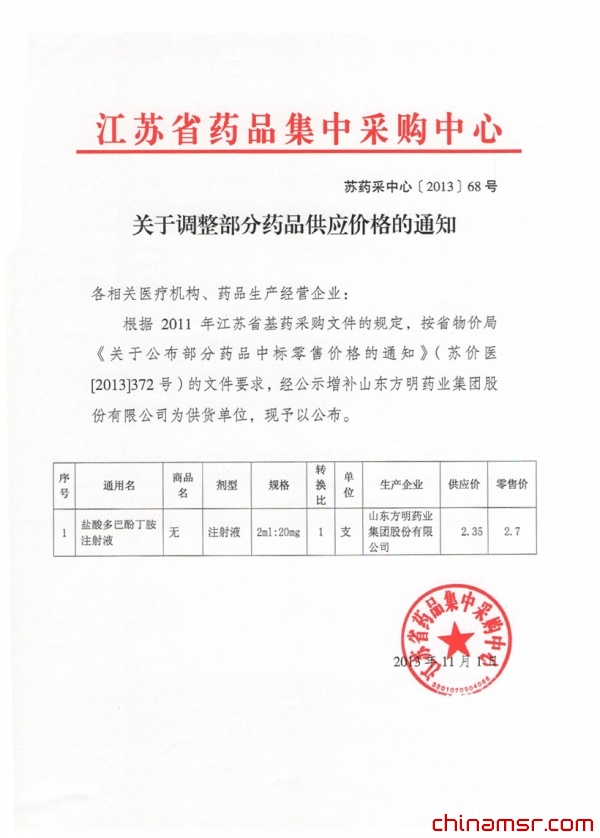 2013年江苏省关于调整部分药品供应价格的通知(20131101) (百度虫医药商务网)