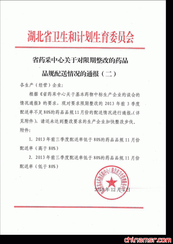2013年湖北省药采中心关于对限期整改的药品品规配送情况的通报(二) (百度虫医药商务网)