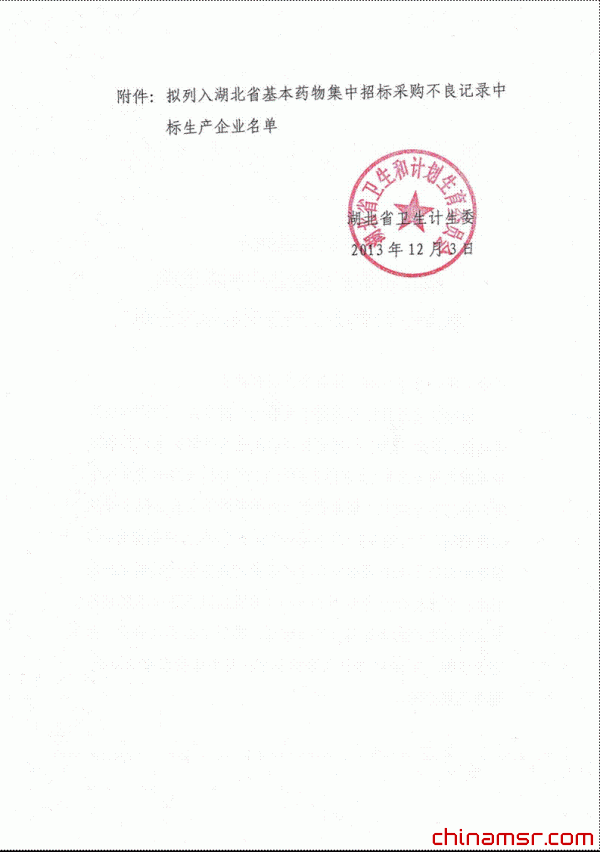 2013年湖北省关于对拟列入湖北省基本药物集中招标采购不良记录中标生产企业名单的公示 (百度虫医药商务网)