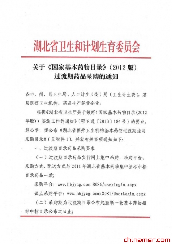 2013年湖北省关于《国家基本药物目录》(2012版)过渡期药品采购的通知 (百度虫医药商务网)