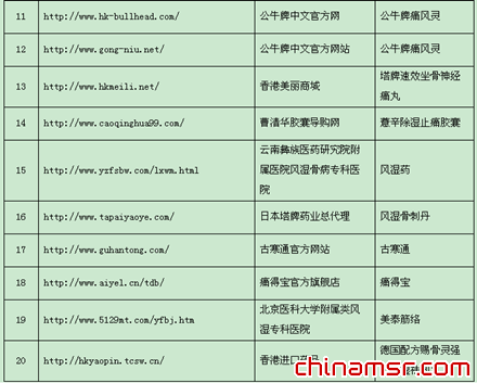 近期,国家食品药品监督管理总局在监督检查中发现,部分网站伪造或假冒开办单位,违法发布治疗糖尿病、风湿病等虚假药品信息,严重危害公众用药安全。国家食品药品监督管理总局已将违法网站移送有关部门进行查处。为了保护公众用药安全,现将20家违法网站予以曝光。