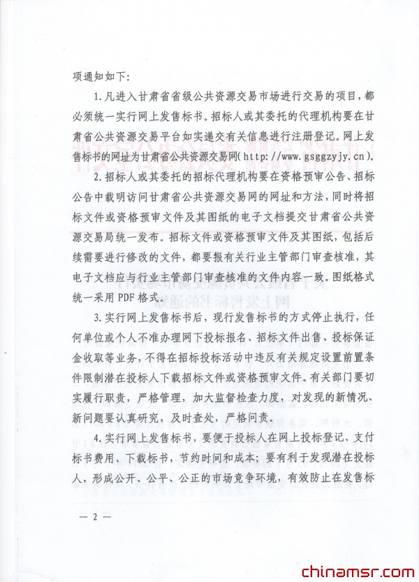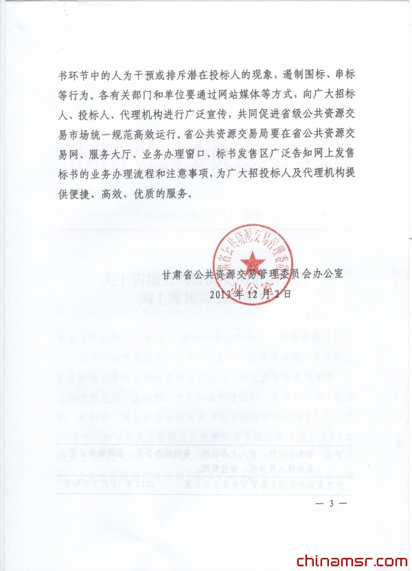 2013年甘肃省关于省级公共资源交易市场实行网上发售标书的通知