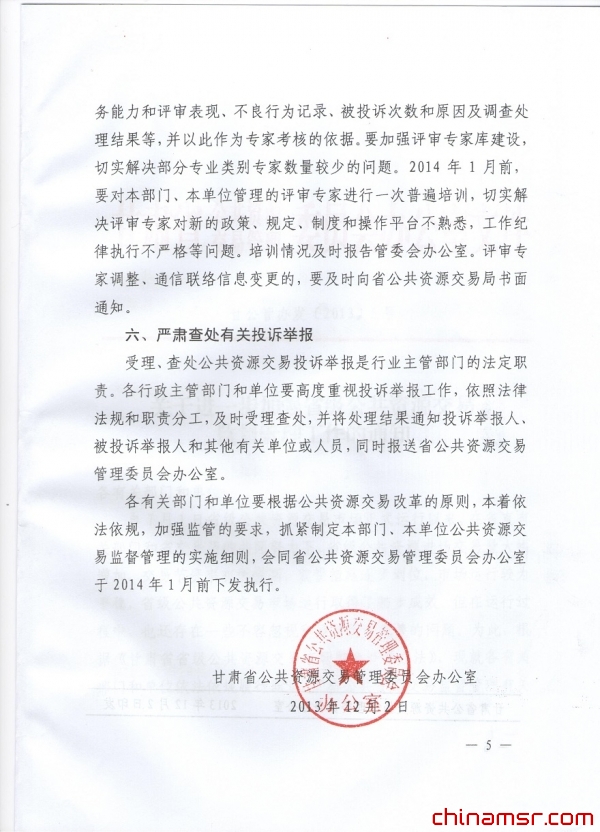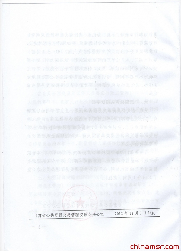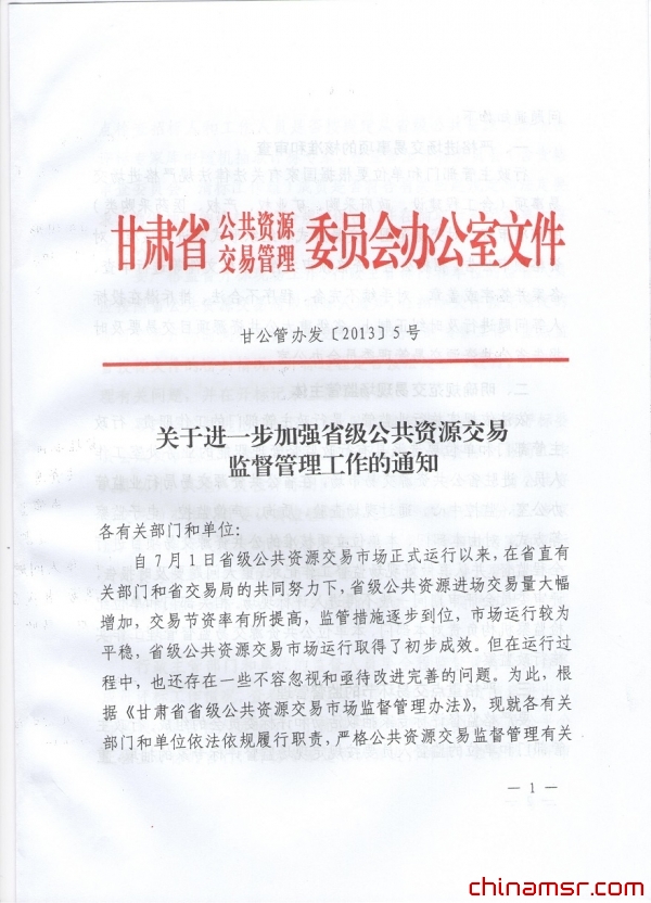 2013年甘肃省关于进一步加强省级公共资源交易监督管理工作的通知