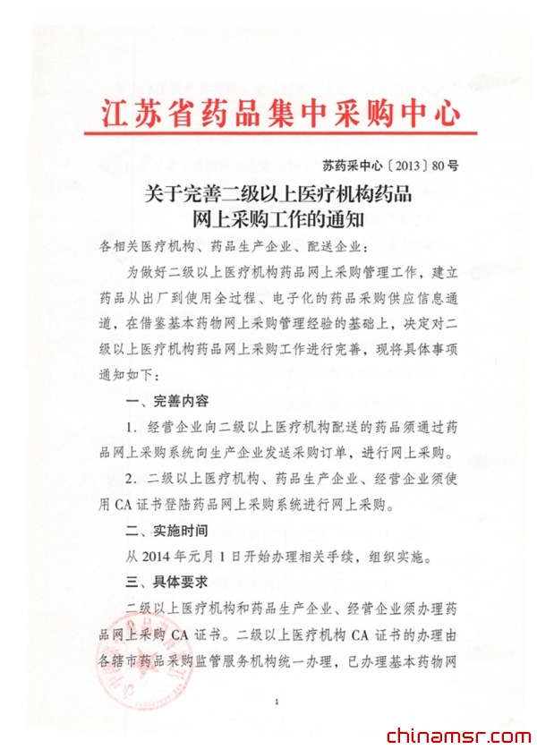 2013年江苏省关于完善二级以上医疗机构药品网上采购工作的通知 (百度虫医药商务网)