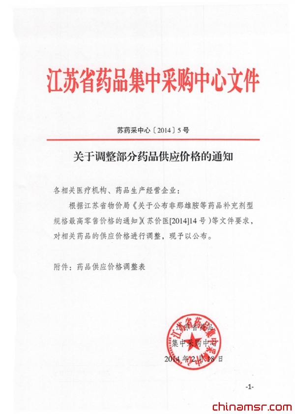 2014年江苏省关于调整部分药品供应价格的通知 (百度虫医药商务网)