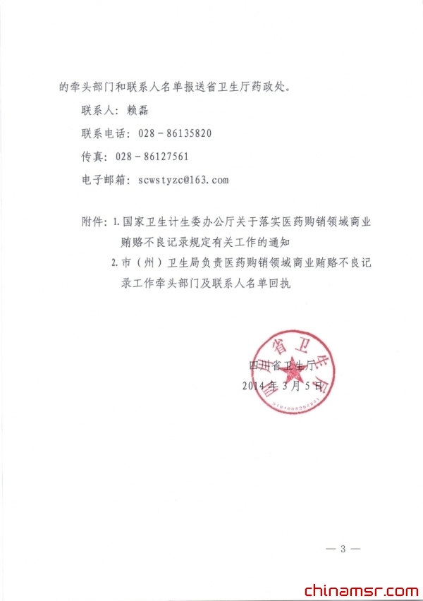 2014年四川省卫生厅转发关于落实医药购销领域商业贿赂不良记录规定有关工作的通知的通知 (百度虫医药商务网)