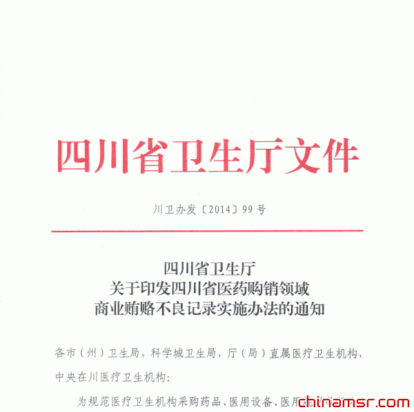 2014年四川省卫生厅关于印发医药购销领域商业贿赂不良记录实施办法的通知 (百度虫医药商务网)