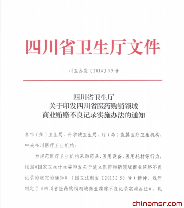 2014年四川省卫生厅关于印发四川省医药购销领域商业贿赂不良记录实施办法的通知 (百度虫医药商务网)