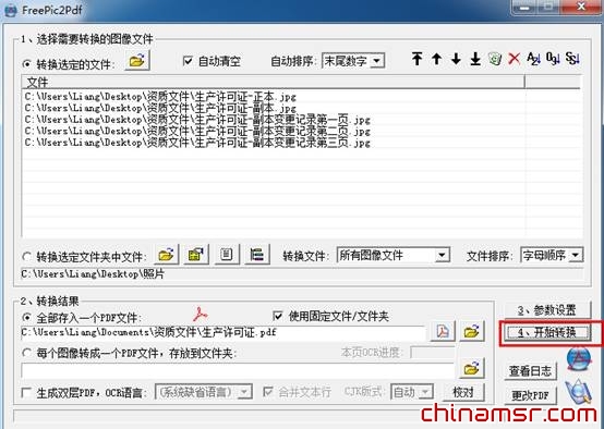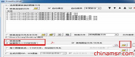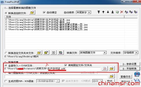 (三)在如图3页面,选择把转换结果存入一个pdf文件,或者每一个图像转换成一个pdf文件,存放到指定的文件夹。