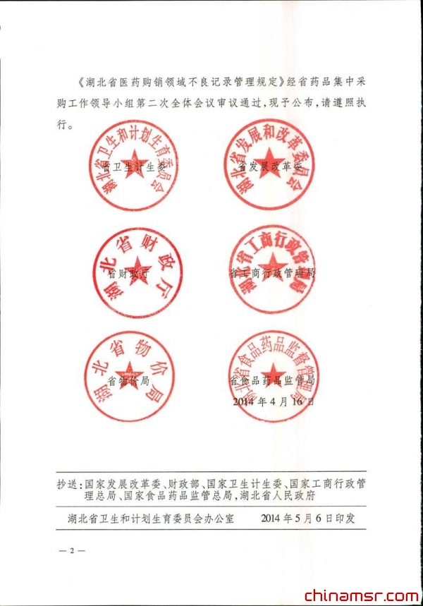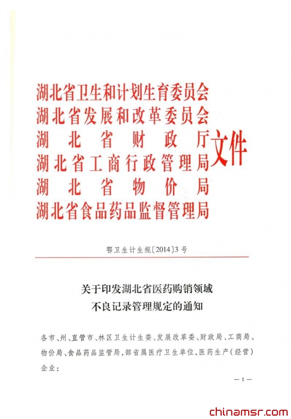 2014年湖北省卫生计生委等六部门关于印发医药购销领域不良记录管理规定的通知 (百度虫医药商务网)