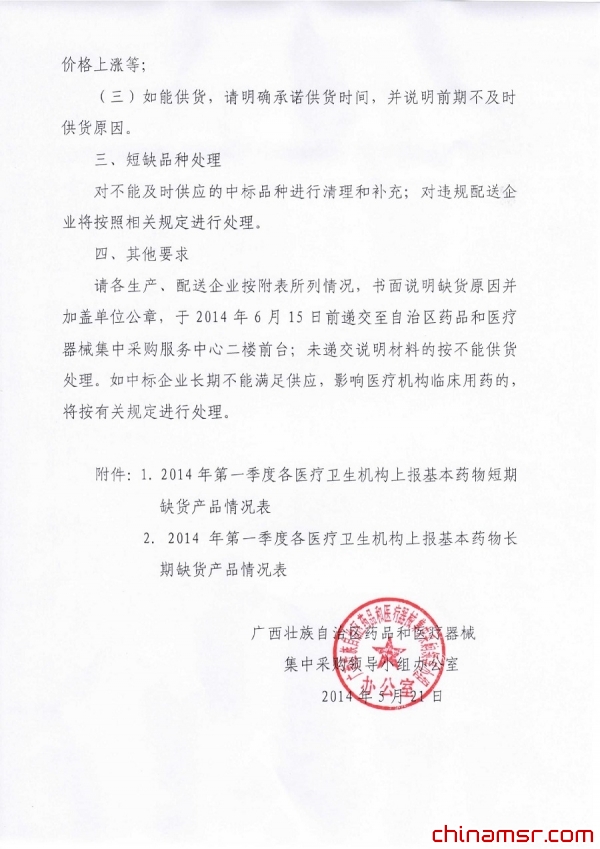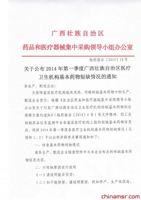 关于公布2014年第一季度广西壮族自治区医疗卫生机构基本药物短缺情况的通知 (百度虫医药商务网)
