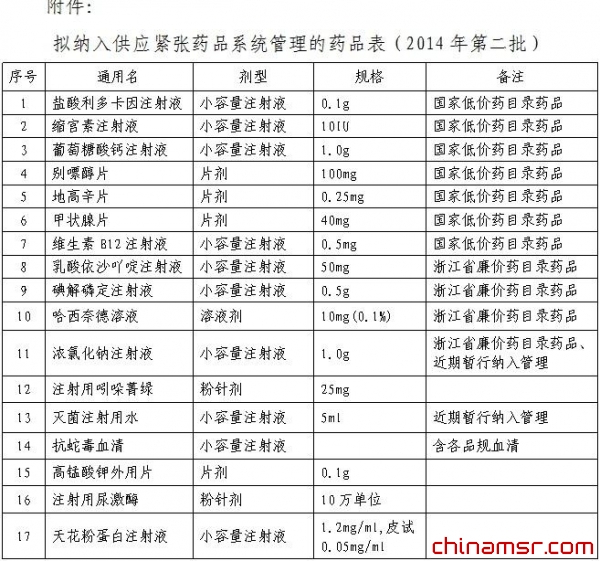 2014年浙江省关于拟纳入供应紧张药品管理系统采购药品(2014年第二批)的公示 (百度虫医药商务网)