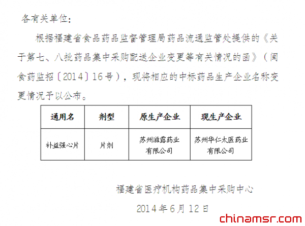 2014年福建省关于第七、八批药品集中采购部分中标企业名称变更的通知(五十九) (百度虫医药商务网)