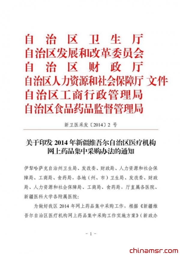 2014年新疆维吾尔自治区医疗机构网上药品集中采购办法