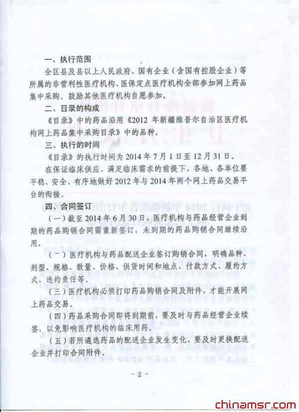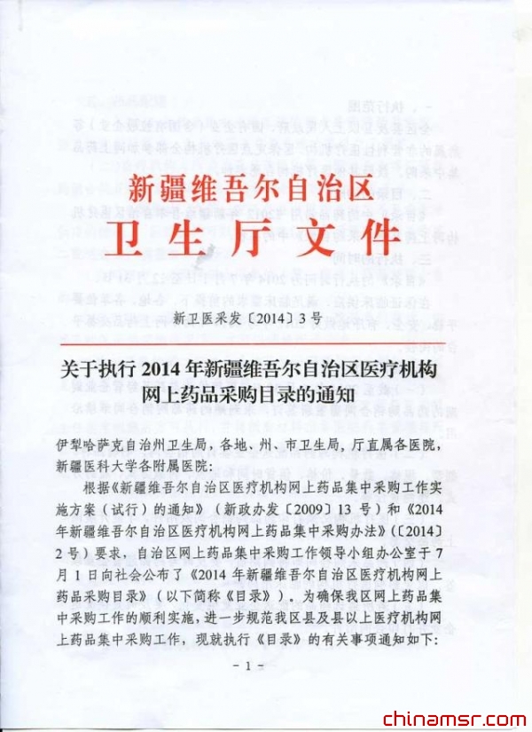 新疆维吾尔自治区关于执行2014年新疆维吾尔自治区医疗机构网上药品采购目录的通知 (百度虫医药商务网)
