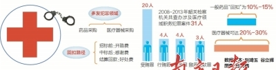 近日,韶关检察机关对2008—2013年所查办的医疗领域职务犯罪案件进行了分析研究,并发布《关于全市医疗领域职务犯罪案件的专题调研报告》。7万多字的报告回应了公众关于该类犯罪案件的热门追问:医务人员与医药代表的权钱交易多发生在哪些环节?职务犯罪有什么样的“岗位特性”?受贿人收取的回扣比例有多高?……