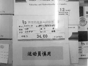 昨天下午,记者来到位于广州路的先声再康药店,看到不少药品的标价签上都标注了“运动员慎用”字样。工作人员指着墙上两张纸,上面密密麻麻地列出了近百种药品名称。“这些药都是含有兴奋剂成分的,按规定必须在药品标价签上标上‘运动员慎用’的字样。”工作人员说,食药监局专门有一个目录,里面列出了一两百种此类药品。