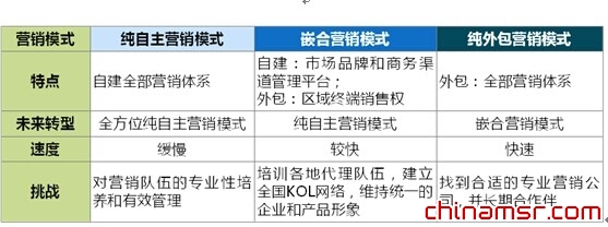 自主营销、嵌合营销与外包营销的效果与挑战比较