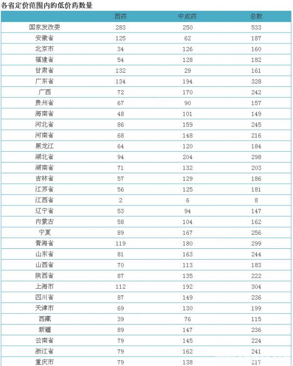 目前,全国各省市低价药目录清单已经全部出完,各省低价药也陆续开始招标,现在我们来盘点一下各省市定价范围内的低价药情况。